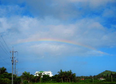| さぁ、帰る日の朝。 少しずつ台風は近づいてはいるものの まだまだ青空の石垣島です! 通り雨のあと、きれいな虹が空に〜(*^。^*) まさにこのツアーの幸せを象徴する最後の朝になりました! ご参加いただきました皆様、 有難うございました(^○^) そして、また来年もここへ帰ってきましょうね〜っ! |