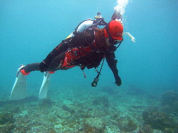 | この日オープンウォーター講習初日Aさん。 めっちゃ余裕です! |