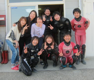 | 一足お先に帰られたお二人も ご参加有難うございました(*^_^*) これからダイバーになる皆さんと 「4引く2は?」の掛け声に大爆笑の皆様です! |