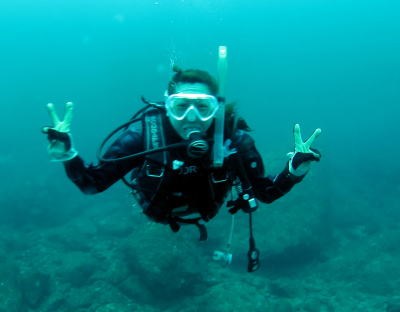 満面の笑みでファンダイブをエンジョイ中のSちゃんです! びっくりするくらい中性浮力が 本当に上手でした〜(*^。^*) 将来は、イントラ間違いないね〜っ!? |