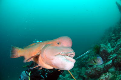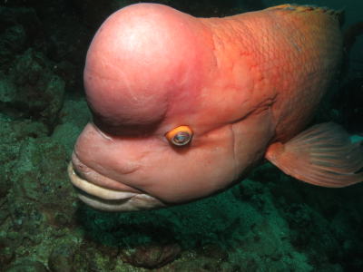 人面魚のようなコブダイさん 大迫力です! 奥に仲間のイラさんも写っていますね(^○^) |