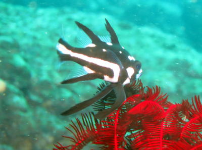 | こちらも珍しいホホスジタルミの幼魚! ウミシダに擬態して ヒラヒラ泳いでいました(^○^) |
