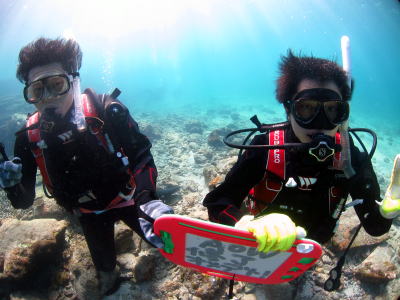 アドバンス講習を無事に修了されたお二人(^○^) 水中ピラミッドにもご参加いただきました! アドバンスGETおめでとうございます! これからはファンダイブで楽しんでいってくださいね♪ |
