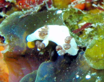 | なんじゃこりゃー??? と話題騒然になった トラパニアダーベルイ、という和名のないウミウシさん 白いピカチューかと思った〜! という意見もでましたが 皆さん、覚えておいてくださいね! |