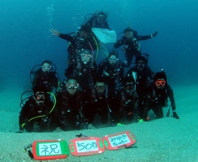 | 11月最後の週末は3連休〜♪3泊4日の方から2泊3日の方まで、ファンダイブ&アドバンス講習でワイワイと潜ってきました!台風などでのびのびになっていたK様の500本記念も無事に盛大にお祝いできました(^○^)K様、おめでとうございます!これからも、楽しく潜って1000本ダイバー目指してくださいね〜っ!! まずは金曜日♪お天気予報に反して、海は穏やか♪翌日の記念ダイブにむけて、まずはビーチダイビングからスタート!なんとビーチでゾウゲイロウミウシを発見\(^o^)/透明度もよく、光がさしこむサンゴを見ながら癒されて帰ってきました! 2本目からは、ボートへ!グラスワールドでは、おなじみのホタテツノハゼにハナゴンベ、最近新登場のスジタテガミカエルウオもチェックしてきました〜っ!これは結構珍しいカエルウオさんなんですよ〜!しばらくいてくれるといいなぁ。 吉右衛門では、シンデレラウミウシさんはご不在でしたが、クラカトアちゃんやキカモヨウウミウシさんに出会えました! 土曜日からは後発隊も合流してのダイビングです!お天気もいいし、海は少しうねりはあるものの、透明度もよくて、快適です(^-^)ファンチームは、まずは備前へ!砂地のホタテツノハゼをチェックしたら、アザハタの根に立ち寄り、そして、ピカチューウミウシを発見(*^。^*)冬の人気者もでてきましたが、夏の人気者 ミナミハコフグの赤ちゃんだってまだまだ元気にしていますよ〜♪ 2本目はグラスワールドへ!再びホタテツノハゼチェックをして、北の根へ!北の根には、可愛いハナゴンベの赤ちゃんがいてくれてますよ〜!カゴカキダイの群れも青い海に映えて、泳いでいました〜(*^。^*) アドバンスチームは、午前中に初めてのドライスーツでのダイビングにチャレンジo(^-^)o 使いこなすのは難しいですが、慣れれば最強のダイビンググッズ!中性浮力も頑張って、GETしていきましょう!! そして、3本目がK様の500本記念〜\(^o^)/アドバンスチームも合流して、まずは水中ピラミッドでお祝いしました(^○^)記念撮影&胴上げの後、チーメメンバーの皆様から、暖かいお祝いのメッセージも頂戴し、素敵なお祝いダイブになりました!まだ7本目のアドバンスチームのお二人も、先輩にいつか追いつくように、潜りに行きましょうね〜っ!! ボートのあとは、ファンチームは、温泉へ!アドバンスチームは、ナイトダイビングへとLet's Go!初めての水中夜遊びは、残念ながら夜光虫は少なかったのですが、巨大なタコがいたり、小さなヒレギレイカがいたり、サンゴの隙間にはチョウチョウウオが寝ていたり、と夜ならではの世界を堪能してきました(^-^) ダイビングを終えたら、今夜はチゲ鍋〜っ\(^o^)/あつあつのお鍋で体も芯からホコホコになり、お腹もとんでもなくいっぱいになりました〜!!いやぁ、食った食った(*^。^*) が、しかし、それだけで終わりではなかったのです(>_<)その後、ログ付けがおわり、K様の500本記念パーティー♪ お腹いっぱいのところへ、ケーキにお祝いのスイカ(^○^)美味しいので、無理〜と思っても、別腹でたべちゃいましたね〜っ!!O様からはお祝いの特別タンククッションなどのプレゼント、そして、STAFFからもお祝いが手渡されました!一段落と思ったら、さらにさらに、赤鯱店長のお誕生日祝いもスタート(^-^)最後は、手作り杏仁パーティーになりました!はちきれるくらいお腹いっぱいになって、お祝いで心もいっぱいの夜になりましたね〜♪ そして、日曜日〜!この日もお天気は快晴(*^。^*)海はさらに穏やかになって、ダイビング日和です〜! こんな日は、外洋へっ!久しぶりに塔の沖へ行ってきました〜!海はスケスケで、なんと船の上から地形が見えてる〜っ!わー、きれい♪と歓声があがります!水中は、というと、アザハタの根にはお魚がビッシリ!ミナミハコフグの赤ちゃんだってまだいましたよ〜っ!そして、数ヶ月前からいるフリソデエビのペアだって、まだいてくれてるんです!!美味しいヒトデをもりもり食べて、大きく育ってますよ(^○^)ドロップ沿いには、イサキやキホシスズメダイの群れもいっぱいで、気持ちのいいダイビングでした! ラストもダイナミックな地形と透明度を堪能するべく、吉右衛門へ!!せっかく透明度がいいので、中層移動で浮遊感を満喫〜っ!!ウミウシもだんだんと増えてきた串本の海を満喫してエキジットしました! アドバンスチームも、ナビゲーションダイブで講習を無事に修了〜\(^o^)/おめでとうございます!なんとこの日のビーチの透明度は20mオーバーで、光もキラキラさしこんで、まさに癒しの世界〜っ!まだ経験本数10本のお二人ですが、今日の海のきれいさにすっかりトリコになられたのでした!これから冬になりますが、水中はこーんなにきれいで快適な世界がまだまだ広がってますので、また潜りに行きましょうね〜っ!!! ご参加いただきました皆様、有難うございました!そして、500本記念のK様、おめでとうございます(*^。^*)これからも600.700・・・1000本と潜りに行きましょうね〜っ!!さら