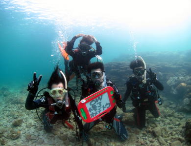 | ファンダイブチームの皆様です! この後、水中で水チュー記念撮影もあったようですよ♪ |