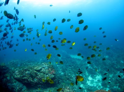 イスズミ礁では 半端じゃない数の魚・魚・魚〜っ!! チョウチョウウオにニザダイが 山のように群れていましたよ! |