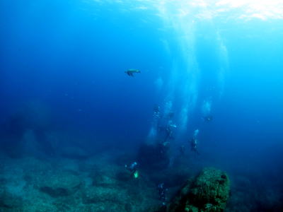 | 土曜の朝、住崎にエントリーすると 「あおーい」海が待っていてくれました! ウネリもなく、快適なダイビングを楽しむ中 可愛いウミガメさんも現れてくれました〜っ(^○^) |