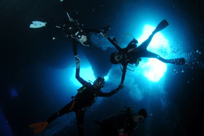 この日は、 ブルーコーナー&ブルーホールへ! 休憩中のホールの壁沿いではツノダシも群れていました! |