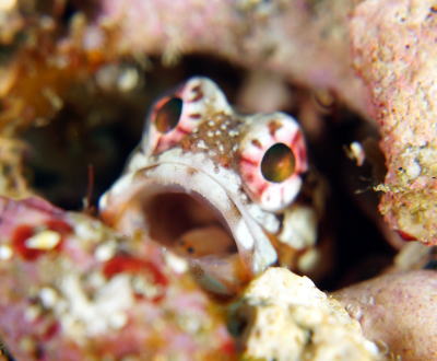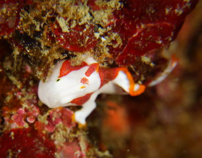 | さて、ボートチームはアイドルいっぱいの海へ 潜りに行きましたよ〜! 備前に出没中の超チビチビな クマドリカエルアンコウちゃん(*^。^*) 早く行かないといなくなっちゃうよ〜っ!! 会いに来てね〜っ(^_-) |