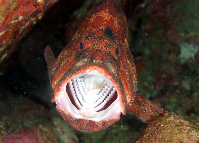 こちらは備前のアザハタさん お口の中をエビさんがお掃除してくれています! そうか、歯医者さんいましたね〜(*^。^*) ジョーくんのお口も見てあげてね〜っ!! |
