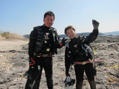 | 最近入籍されたばかりのIさんご夫妻です! 昨年秋に取得予定でしたが 予定がのびて ようやくダイバーデビューできましたね〜\(^o^)/ さぁ、いってきまーす!! |