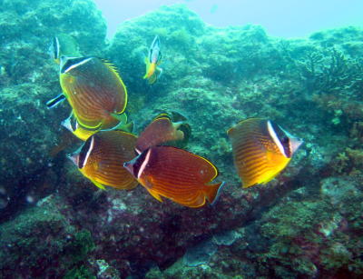 こちらではチョウチョウウオが ホンソメワケベラさんにお掃除されて 皆気持ち良さそうでした(^-^) |