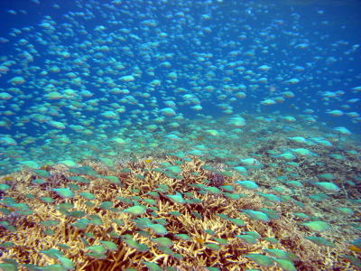 デバスズメダイの数も半端じゃありませんっ!! むこうが見えないくらいの大群に囲まれて 癒しの時間を過ごしました〜! |