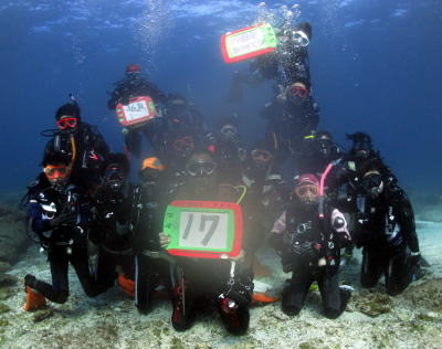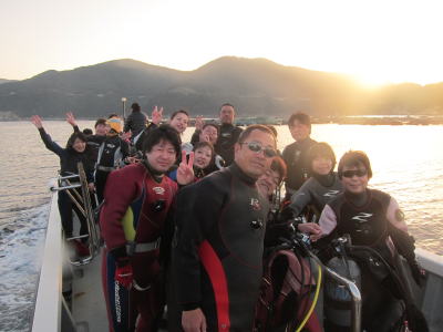 | 水中で集合写真〜! っと、なぜかレンズが曇り ぼんやりした感じになりましたが ダイビングは一点の曇りもない 楽しいものになりました!! これからも皆様、どうぞ宜しくお願いいたします!! |