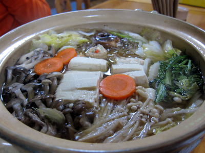 そして、夕食です! この日の夕食はなんとお鍋〜♪ もちろんお魚三昧もありました! まずは皆でかんぱーい!! |