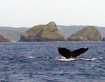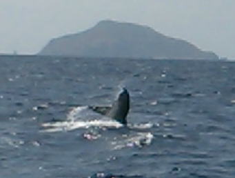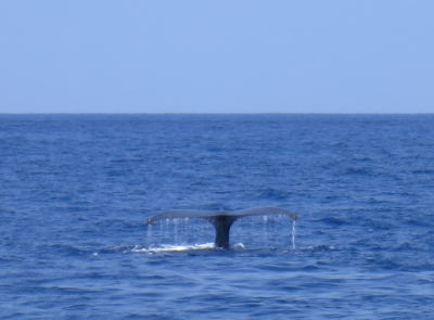 お母さんが潜る直前のテール! なんと2日間連続で同じ仲良しの親子クジラちゃんと 出会うことができました〜(^-^) |