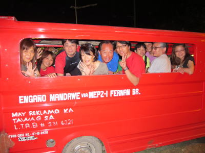 夕食は、こんな当店らしい真っ赤なモーティキャブでお出かけです♪ EL SUENOという日本人経営のレストランへ! |