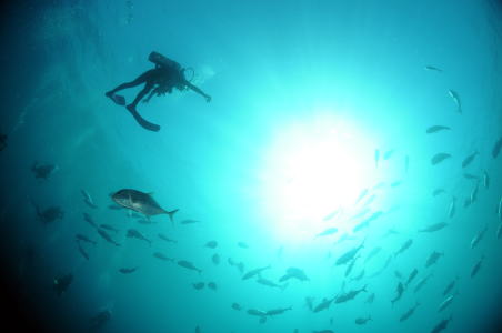 翌日はヒルトゥガン島でダイビングぅ! 早速ロウニンアジの大群が登場です(^-^) かっこよかったなぁ♪ |
