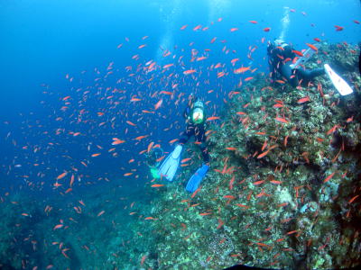 続いては、まさに竜宮城〜♪ アカネハナゴイやキンギョハナダイ ハナゴイの群れがワンサカいました〜\(^o^)/ 癒されますね〜! |