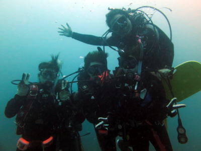 | まずはOWチーム! 頑張るぞー!と気合を入れて、OW講習開始です!! 始める前はいろーんなことを考えて不安になることもありますが、 海に入ってしまうと、そんな不安も吹っ飛んで、 超楽しい世界に見とれてしまいますね〜♪ |