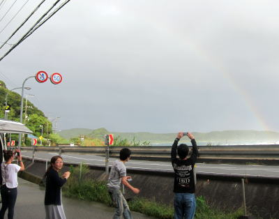 ダイビングを終えたあと、 突如大雨がやってきました(>_<) どうなるの〜と思ったら 雨が止んだあとには、こーんな素敵な虹がかかりましたよ! 嵐のあとにはいいことがあるものですね〜♪ |