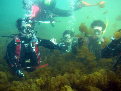ちょっと海藻と皆さんのフィンキックで濁ってしまいましたが きれいなサンゴも見れましたね〜\(^o^)/ ダイバー認定、おめでとうございます! これからも宜しくお願いします(^-^) |
