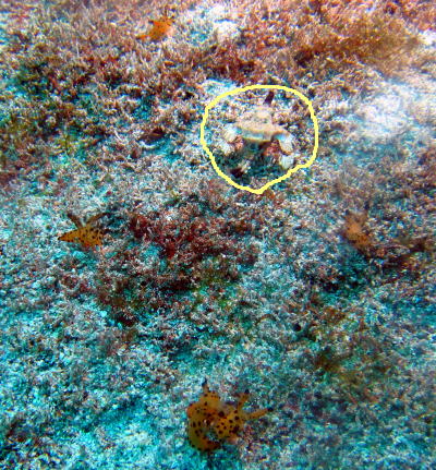 | 柏島なら続々見つかるゼブラガニ♪ 自力でも発見できるので ぜひ探してみてくださいね! |