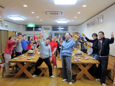 | なんと到着後は 全員で深夜のカンパーイ(^○^) Fさん、ご馳走様でした♪ |