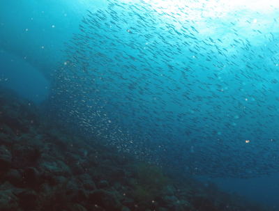 | キビナゴの群れもいっぱいでした! キラキラの群れに 巨大なブリも泳ぎ回っていましたよ〜! |
