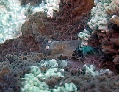 | こちらも撮影が大変難しい穴の中にいる バイオレットボクサーシュリンプv(^-^)v バディ?!の最高のライティングのおかげ?で 完璧に撮影できましたね! |