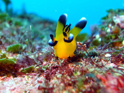 今年大発生のピカチューウミウシさんですが なかなかピカチューっぽく撮影するのは難しい! そんな中、Oさん会心の一枚かな〜(^_-) |
