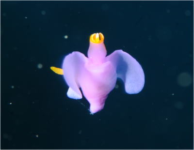 南のクリオネ、と呼ばれるムラサキウミコチョウ まさにクリオネさんのように 泳いでいました〜(^○^) |