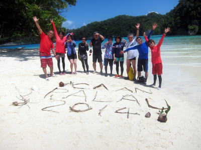 | 毎年恒例になりました4月のパラオツアー♪今年は大潮に合わせて、ビュンビュンのブルーコーナーを目指してきましたよ\(^o^)/前年は、機材のトラブルでパラオ到着が遅れてしまいましたが、今年はスムーズにパラオに到着!美登寿司でまずは腹ごしらえをしてきました! 翌日からダイビングがスタート!台風が通過した後ということで、コンディションは回復途中の海で、前日までは外海にも出れないという状況だったようですが、なんとかウーロン島方面へ行くことができました!まずは初パラオ&初ドリフトの皆様のチェックダイブも兼ねて、グラスランドへ!ここの砂地にはガーデンイールがニョキニョキ\(^o^)/オオメカマスの群れや、ホウセキキントキの群れもいっぱい!砂地にはホワイトチップもあちこちで休憩中でした!初ダイブから早速サメを見て、大興奮の初パラオメンバーの皆様です(^-^)そして、なんと休憩中には、タイワンイトマキエイの群れが船の横を通過〜♪水面からは6匹ほど見えていましたが、水中に突っ込んで撮影した映像では8匹くらい 2本目は、地形ポイントのシアストンネルへ!少し深めのトンネルですが、皆さん上手に潜降〜トンネルを上手に抜けて、途中アケボノハゼも観察♪何もしらずにアケボノを引っ込めてしまうというプチ事件?!もありましたが、あちこちにでていましたよ!トンネルを抜けて、浮上の途中にはオレンジフィンアネモネフィッシュが産卵して卵には赤ちゃんの目も見えていました! お昼ごはんをはさんで、ウーロンチャネル ドリフトへ〜!前年は流れがなくて、泳ぎに泳いだチャネル、今年はどうかな〜?台風の影響でまだ少し濁りも残る海でした。いつもならサメがガンガンいる場所も、濁っているので見えにくかったですね(>_<) そして、いよいよチャネルへ入っていきます!すると・・・だんだん流れてきましたよ〜(*^。^*)途中からは、フィンを蹴らなくても進んでいきます!中性浮力でスイスーイと流れに流されて気持ちいい〜♪これぞチャネル〜なダイビングができました!最後は巨大なキャベツコーラルを見てエキジットとなりました! 4本目は内海でのんびりマクロダイブ!可愛いカニハゼに、きれいなギンガハゼ、そして、サンゴいっぱいの癒し系なポイントでのんびりしました! ホテルに戻ってシャワーを浴びたら、夜は海沿いのおしゃれなレストラン ジャイブへ!美味しい食事をいただきながら、この日のダイビングを振り返りました! 翌日は、さらに海も穏やかになってくるはず!そして、パラオと言えばブルーコーナー、ということで、いざ外海へ〜\(^o^)/朝一は下げ潮からのエントリーです!透明度もよくて、カスミチョウチョウウオとアカモンガラの大群がどばーっと群れています!そして、もちろんサメもいっぱーい\(^o^)/コーナーに近づいたところで、練習も兼ねてカレントフックをかけてみました!少し緩めの流れでしたが、流れに逆らって浮いている目の前をナポレオンにロウニンアジに、ホワイトチップやグレイリーフシャークが泳いでいきます(^-^)フックを外して移動していくと、タイマイが休憩中♪根の上にはオオメカマスも群れ、端っこまで行くとギンガメアジの大群が広がって群れています(^○^)初のブルーコーナーで、早速度肝を抜かれる光景が広がっていました! 2本目は、ニュードロップオフ!ちょっとうねりのせいで流れが読みづらく、流れに逆らって泳ぐのはちょっとしんどかったかな?まぁ、こういうのもパラオってことですね(^_-)ドンマイ、ドンマイ♪ 3本目は、再びブルーコーナー!今度は上げ潮です(*^。^*) エントリーして少し泳ぐとマダラタルミの大群がっ!深場へどどーんと下りて、マクロ穴を覗くと、ヘルフリッチがペアでホバーリング(^○^)ベテラン勢は分かったみたいですが、初心者の二人はちょっと分からなかったみたいでしたが、また来年腕を磨いてリベンジしようね〜o(^-^)o もう一段上にはアケボノハゼもいました!いよいよコーナーが近づいてきて、だんだん流れが強くなってきました〜(^-^)さぁ、翔くんからつかんでサインがでます!流されながら必死に岩をつかんで、コーナーへと移動していきます!初パラオのYちゃんは、「緊急事態発生!!」と思ったらしいですが、これぞブルーコーナーなんですよ〜(*^。^*)ちょうど目の前がギンガメアジのトルネードになっている場所に、皆でカレントフックをかけていきます!まさに激流〜〜〜\(^o^)/ すごい!!気持ちいい〜!!楽しい〜!!エアーが真後ろに流れていきます!この感じ癖になっちゃいますね(^_-)目の前にはギンガメアジの大群に、グレイリーフシャークっ!ホワイトチップっ!ナポレオーンっ!!!しばし見入って楽しんだら、フックを外して流れにのってLet's Go!ビュイーンと流されながら移動して、最後は中層で流されながら安全停止!なかなか素敵な激流のブルーコーナー(^-^) あがってみたら、「緊急事態」が「超楽しかった〜!」に変わってましたね(^_-) この日のラストは、マンタ狙いのジャーマンチ