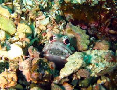| 2本目は、備前のアザハタの根へ! 少し前に見つかったボロカサゴ 皆で探しましたが、みつからないので あきらめて戻ろうとしたその時 Kちゃんが見つけてくれました〜(*^。^*) Kちゃん、有難うございました!! |