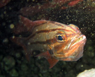 | 土曜日は、予想外の強風で沖は白波・・・ ということで、ビーチでのんびり2ダイブしてきました! ビーチでも、オオスジイシモチの口内保育がスタート すでに赤ちゃんの目がキラキラ見えていましたよ! スズメダイ達も巣作りを始めています! |