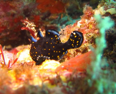 | Kさん発見のマツカサウオ♪ ゴールデンイールモレイは見れなかったですが、 代わりにゴールデンなお魚登場でした! |