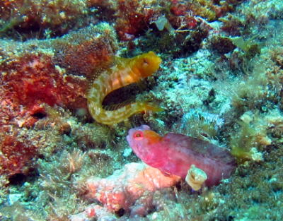 ハダカコケギンポのなわばり争いっ! 紫の子に完全に軍配はあがっていました〜! |