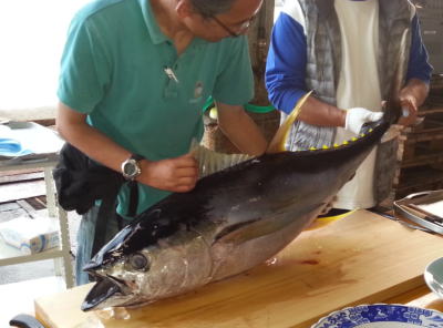 | マグロの解体ショーも開催されました〜! 立派なマグロちゃんがこれからさばかれていきます(^-^) |