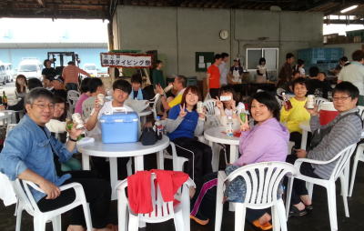 ダイビングが終わったら、温泉へ行って ダイビング祭り 夜の部へ! まずは皆でかんぱーい!! |
