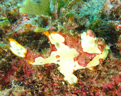 翌日も快晴&穏やかな海でダイビング♪ デジカメにモニターライトをつけて撮影に挑んだ方も! Sちゃんがクマドリカエルアンコウちゃんを見つけてくれました(*^。^*) |