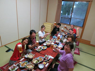 白浜の海を思う存分満喫して、 夜は民宿 まるきさんで美味しい晩御飯♪ カレー鍋に、トンカツに、お刺身まであって お腹いっぱいになりました! Kくんは、なんとこの日人生で初めてソーメンを食べたそうです(^_-) |