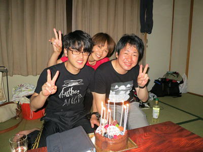 | 夕食の後は、Sぼんのお誕生日パーティー♪ ローソクをフーしたのは、いつぶりだろう、という ケーキでお祝い\(^o^)/ 甘いものは苦手なSぼんの分まで 友達のKくんが食べてくれました(^-^) |