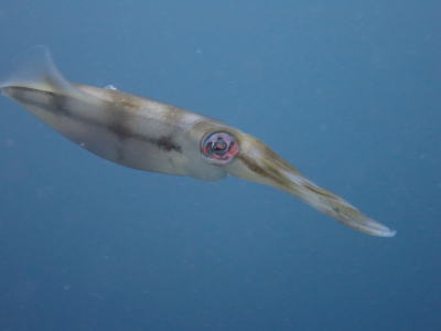 こちらは色津でみかけた可愛いイカの赤ちゃん! 手のひらバックなので、 その小ささわかっていただけるでしょうか? ビックリしたこの子、食べようとしていたエビを つい吐き出してしまってました(>_<) 可愛い♪ |