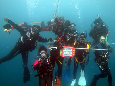 なんとこの日は初白浜みなべのSボンのお誕生日〜\(^o^)/ 水中でもお祝い撮影です♪ |
