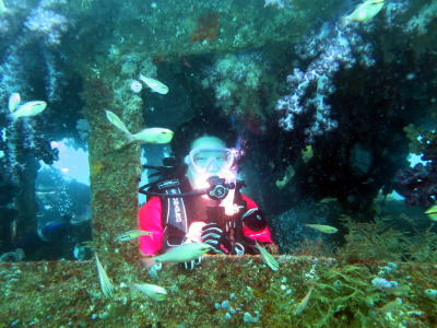 | お次は、やっぱり沈船いっとかないと〜ということで沈船へ! こんな記念写真も撮ってみたり〜 |