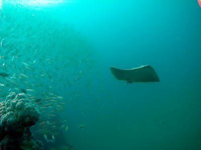 | 可愛いサイズのツバクロエイさんでした! STAFF、二人とも15年以上ダイビングしてて 初めてのツバクロエイさんでした(*^。^*) ちょっと嬉しい出逢い〜♪ |