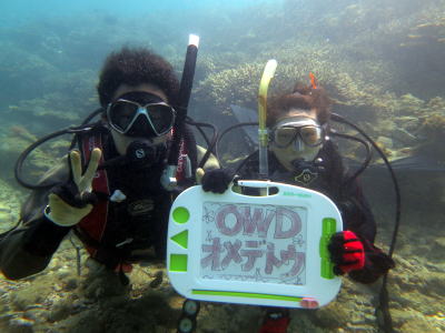 | そして、日曜にはオープンウォーターダイバー認定o(^-^)o おめでとうございます! 新婚旅行にむけて、 スキルアップしていきましょーっ!! |