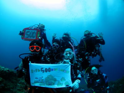| そして、1300本記念のKさん いつも楽しそうに潜っておられる姿が 私達の支えです(*^。^*) |