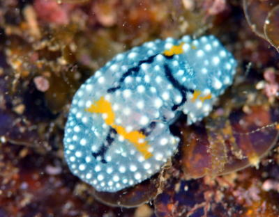 | こちらはミラクル発見のシモフリカメサンウミウシでーす! ちょっと横っ腹?!が切れてるのかな? |